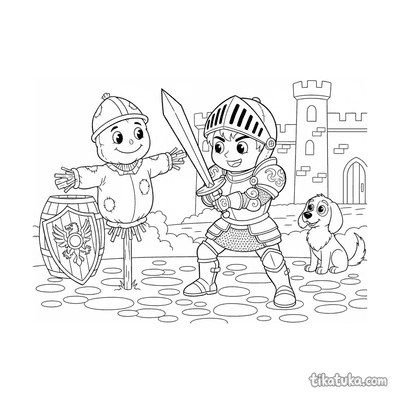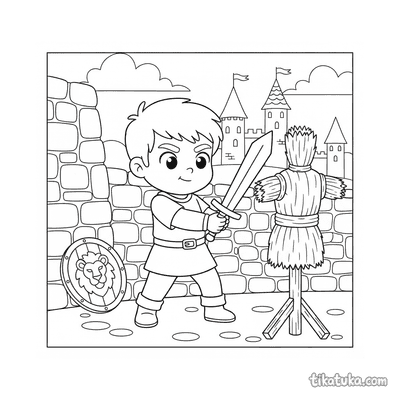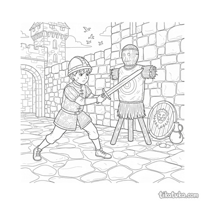This collection brings together scenes built around boyhood adventures — young knights training with wooden swords in castle courtyards, boy astronauts planting flags on the moon, and junior archaeologists carefully uncovering dinosaur fossils. Every sheet features a distinct character in action, giving kids a clear story to follow as they work. From medieval duels to science expeditions, the range of scenes keeps things fresh across many sessions.