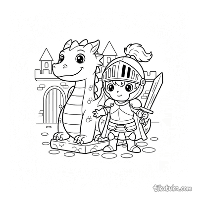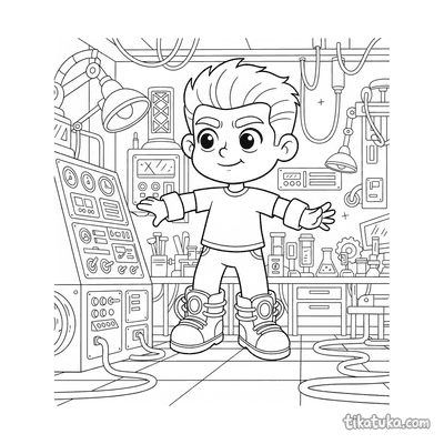 With 285 pages in this section, the variety spans classic adventure themes that boys tend to gravitate toward: castle knights, space exploration, prehistoric discovery, and hands-on trades like cooking. Each scene is drawn with clear outlines and enough detail to hold attention without overwhelming younger artists — characters are active and mid-scene rather than posed, which makes the coloring feel like completing a story rather than filling in a template.