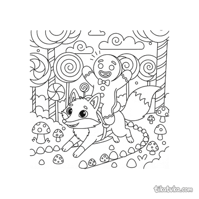 Discover enchanting fairy tale illustrations for children aged 2-12. Explore scenes like the Gingerbread Man's escape or Kolobok's journey. Our collection features designs with foxes, bears, and other animal friends in enchanted forests and royal settings. These pages foster imagination and storytelling for both toddlers and older kids.