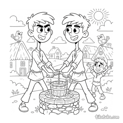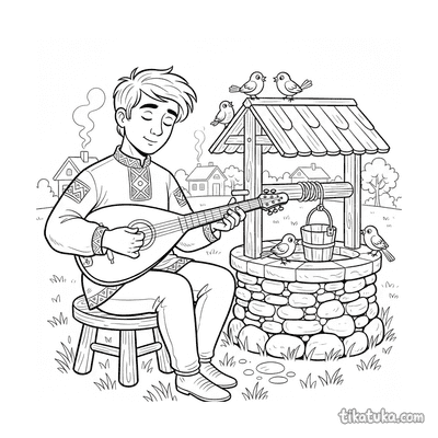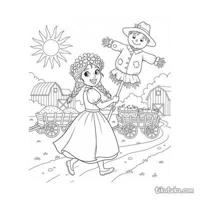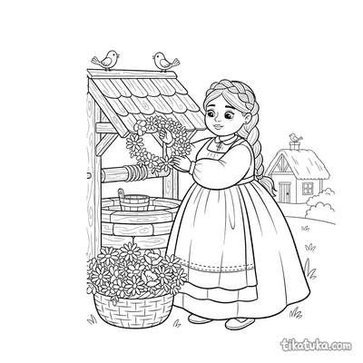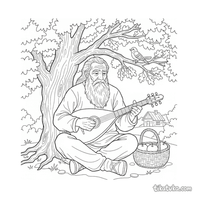 This section holds 152 colorings pages rooted in folklore from around the world. The subjects range from mythical household spirits and forest guardians to seasonal celebrations β spring ribbon dances, harvest fairs, lantern processions across bridges, and village musicians under ancient trees. Scenes are drawn with clear, open outlines that work well for younger children who are just learning about folk characters, and detailed enough to keep older kids engaged with the storytelling behind each image.
