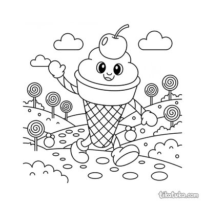 This section brings together scenes from the world of food β cheerful watermelon slices, wobbly sundaes, stacked pancakes dripping with syrup, and sandwiches on the move. Every page features a single food character or scene drawn with clear outlines and plenty of open space for kids to fill in. The cast includes both everyday snacks and imaginative food characters with faces and personalities.