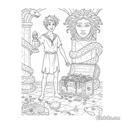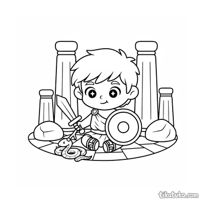 From Greek labyrinths to celestial temples, these coloring pages bring the world's great myths to life through bold, detailed line scenes. Children encounter young heroes riding Pegasus, wise oracles in temple gardens, sun chariots crossing the sky, and boatmen ferrying travelers through ancient forests. Every page is rooted in a mythological tradition, giving kids a window into stories that have shaped cultures for thousands of years.