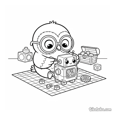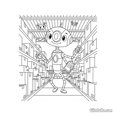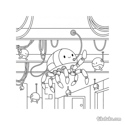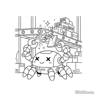This collection spans an unusually wide range of robotic characters and settings β a clockwork robot juggling gears, a submarine bot fixing a broken gear on the ocean floor, a knight robot polishing its shield, and an interstellar gardener tending crystal plants in deep space. Each page is built around a specific scene with a clear subject and action, making it easy for kids to follow the story while they work. The robots range from compact and quirky helpers to large mechanical explorers, giving children of different ages something interesting to engage with.