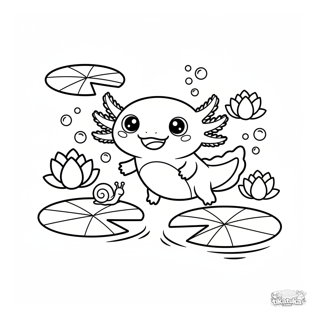 A Axolotls and Kawaii Water coloring page with Easy detail. It suits ages 2-3 years, prints well at home, and opens right away in online mode.