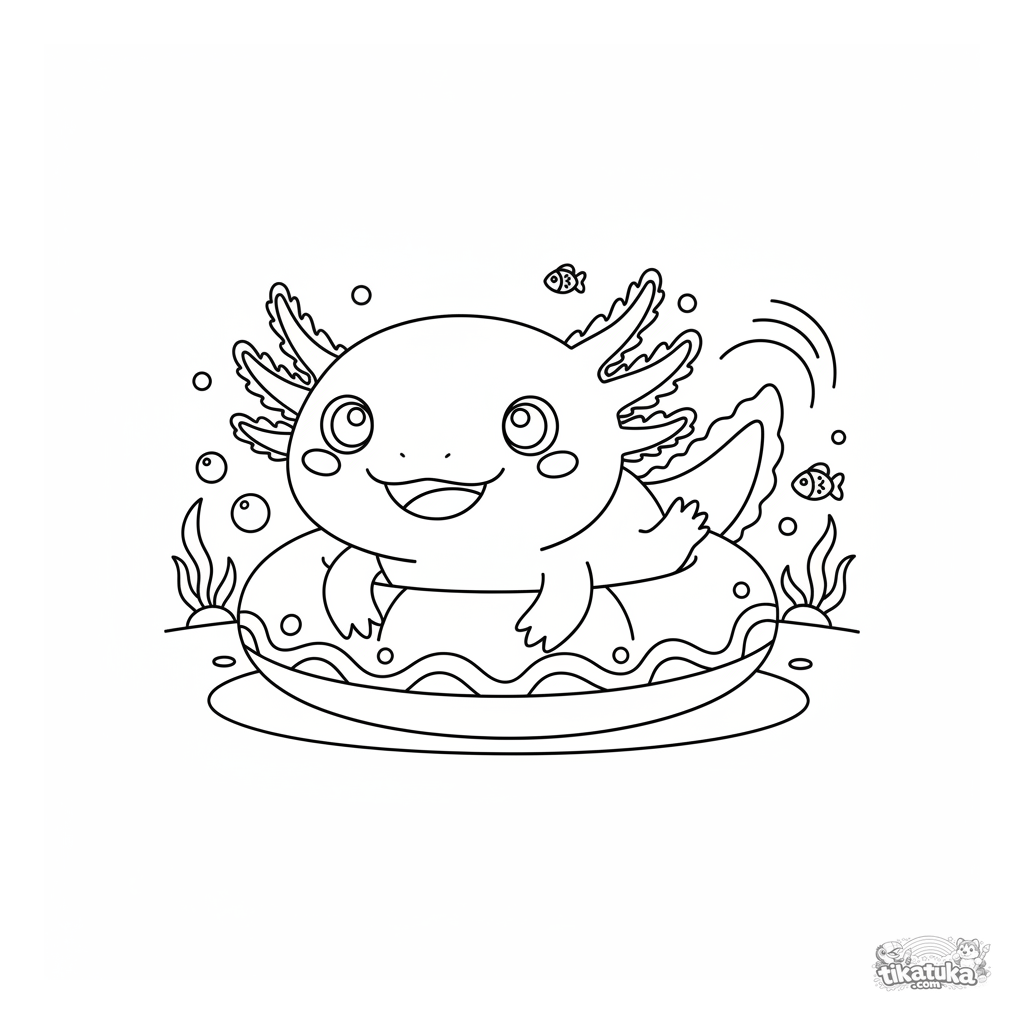 A Axolotls and Kawaii Water coloring page with Medium detail. It suits ages 4-6 years, prints well at home, and opens right away in online mode.