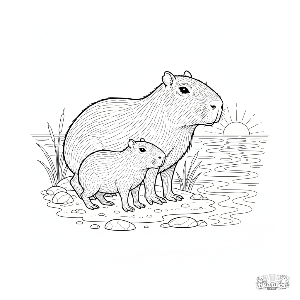 A Capybaras and Chill coloring page with Hard detail. It suits ages 10+ years, prints well at home, and opens right away in online mode.