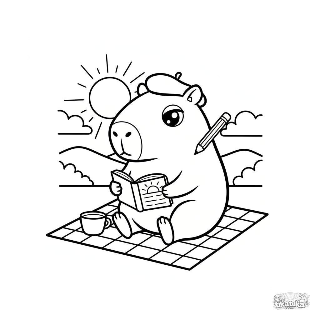 A Capybaras and Chill coloring page with Medium detail. It suits ages 4-6 years, prints well at home, and opens right away in online mode.