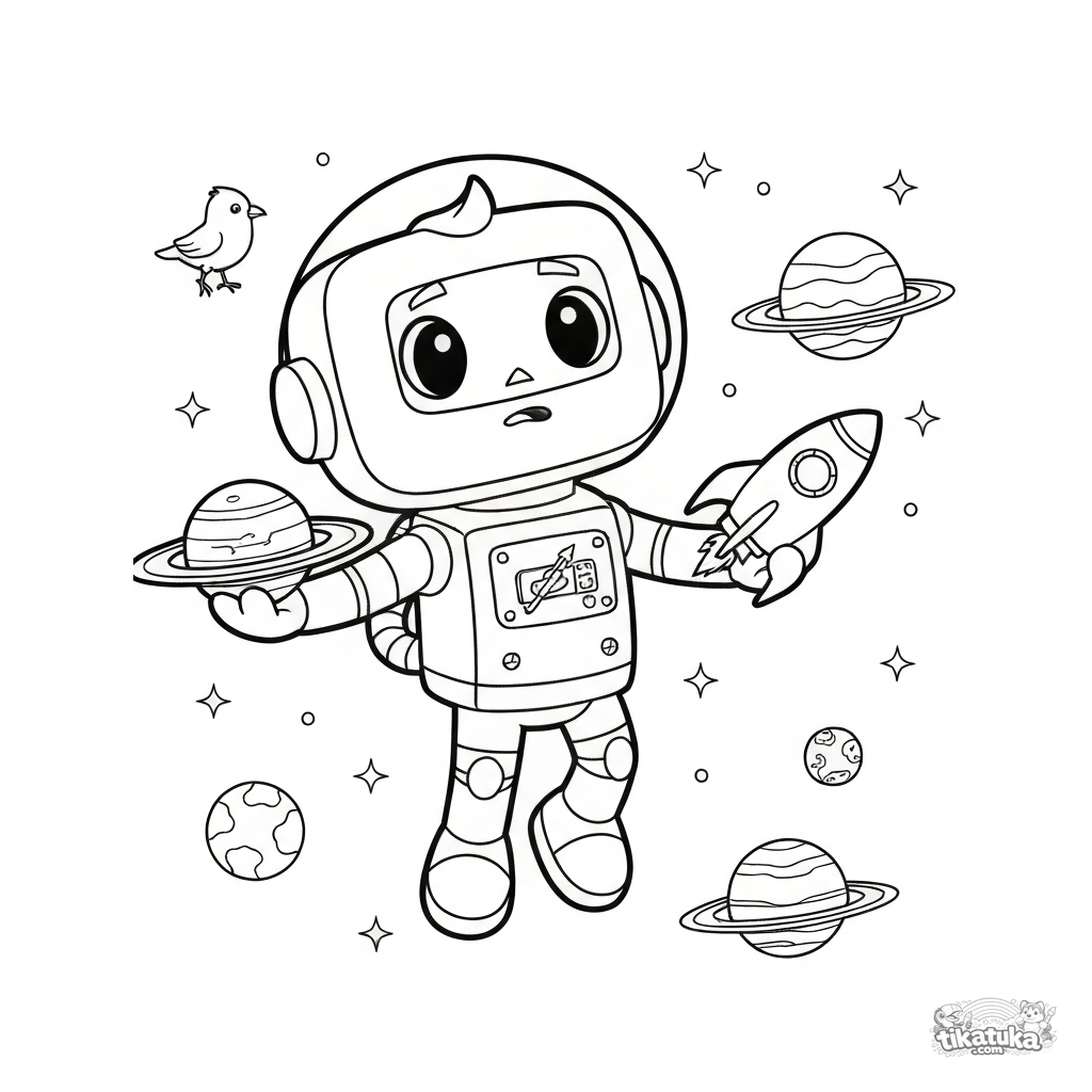 A Space coloring page with Medium detail. It suits ages 3-6 years, prints well at home, and opens right away in online mode.