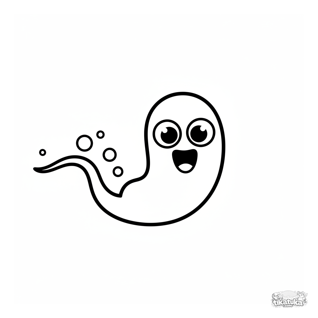 Simple coloring page for toddlers 2-3: a happy cartoon bacterium with big eyes. Large shapes, low detail.