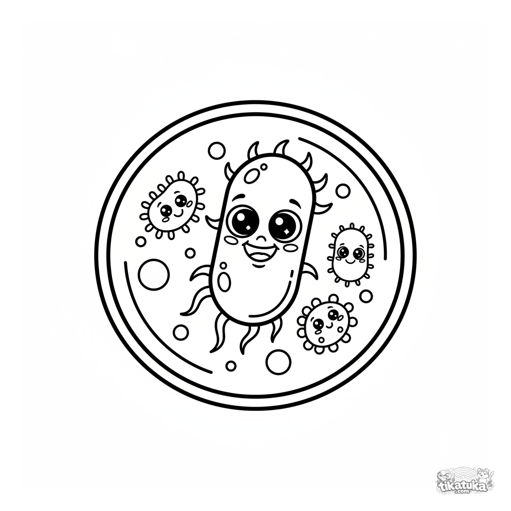 A Microbes coloring page with Easy detail. It suits ages 2-3 years, prints well at home, and opens right away in online mode.