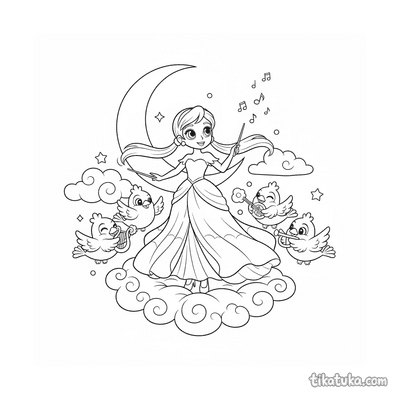 A Princesses coloring page with Easy detail. It suits ages 2-3 years, prints well at home, and opens right away in online mode.