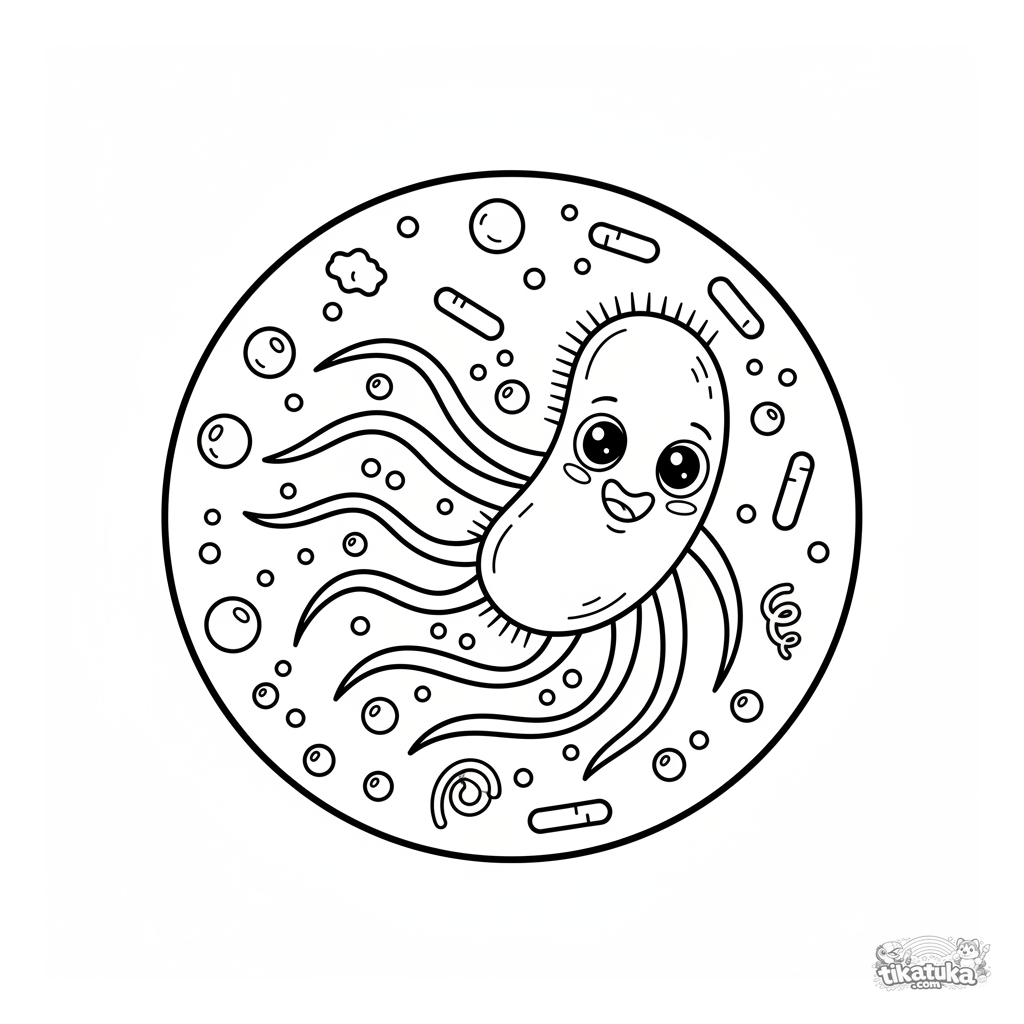A Microbes coloring page with Medium detail. It suits ages 3-6 years, prints well at home, and opens right away in online mode.