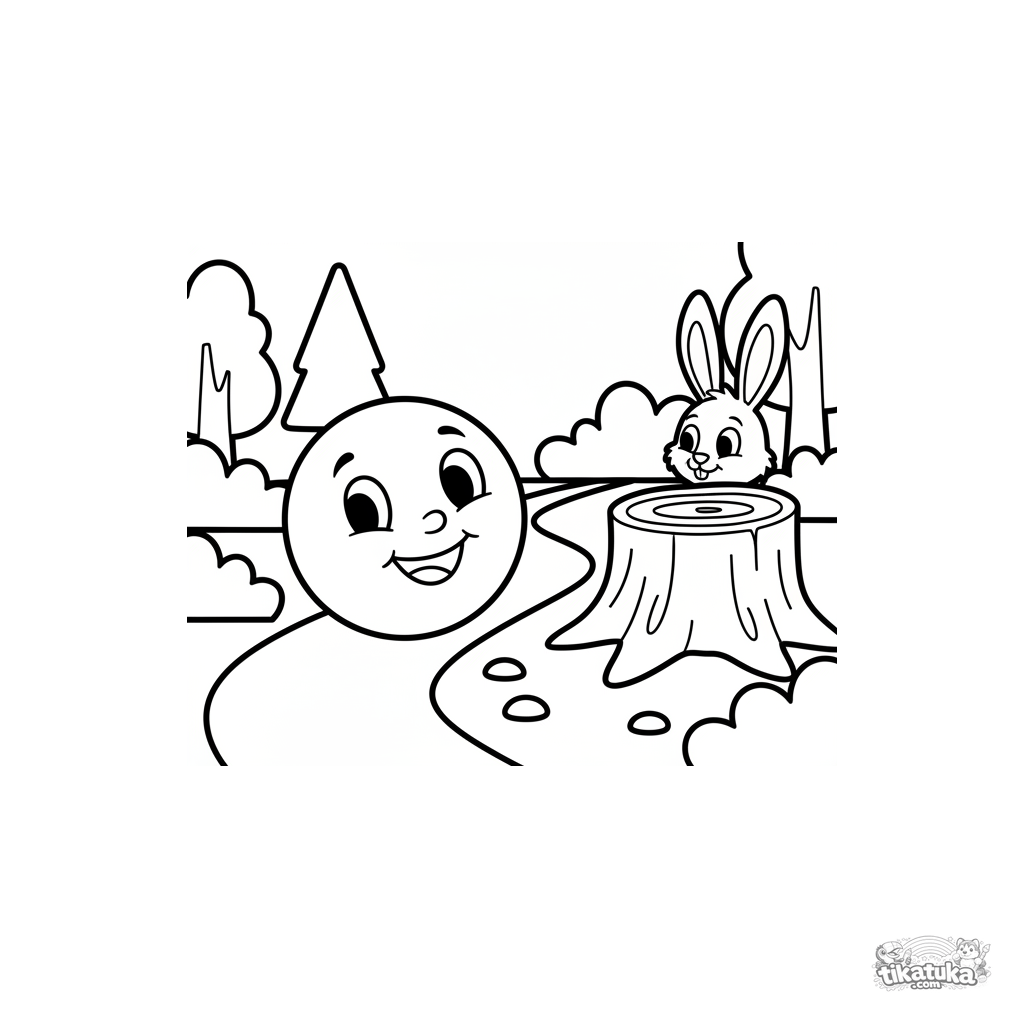 A coloring page based on the Russian fairy tale 'Kolobok' for the very young (2-3 years). Very simple shapes, a familiar character, helps introduce classic stories.