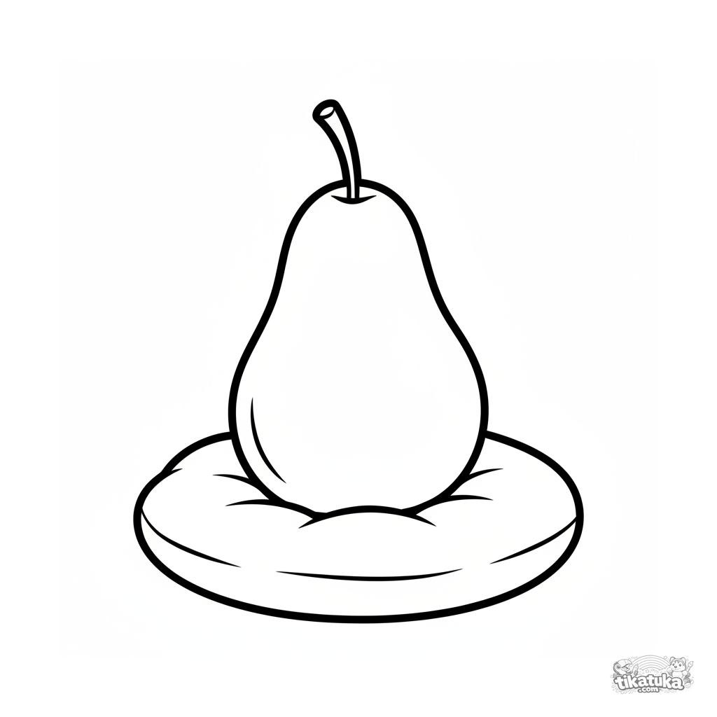 Simple pear coloring page for toddlers. A clear, recognizable pear outline rests on a soft cushion. Perfect for first coloring activities.