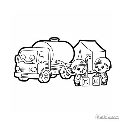 A Military Vehicles coloring page with Medium detail. It suits ages 7-9 years, prints well at home, and opens right away in online mode.