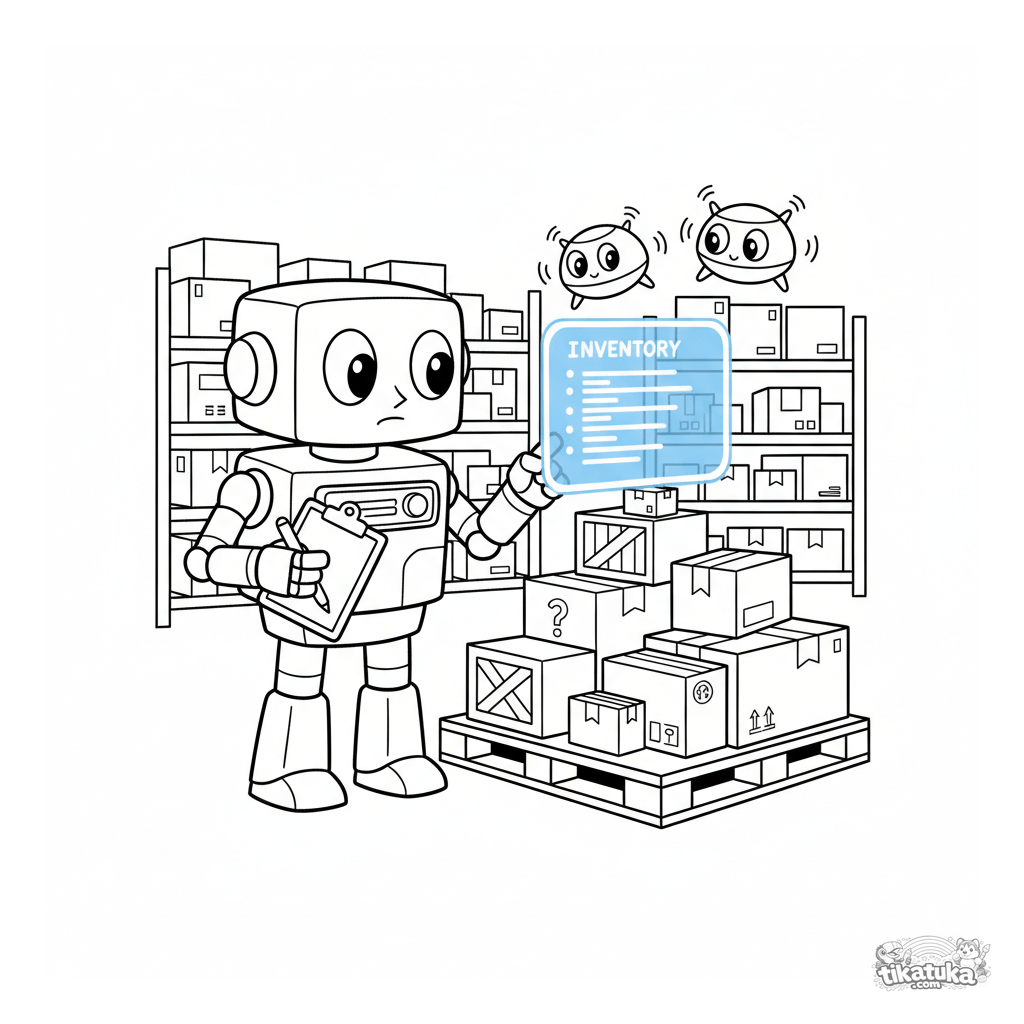 A Robots coloring page with Medium detail. It suits ages 4-6 years, prints well at home, and opens right away in online mode.
