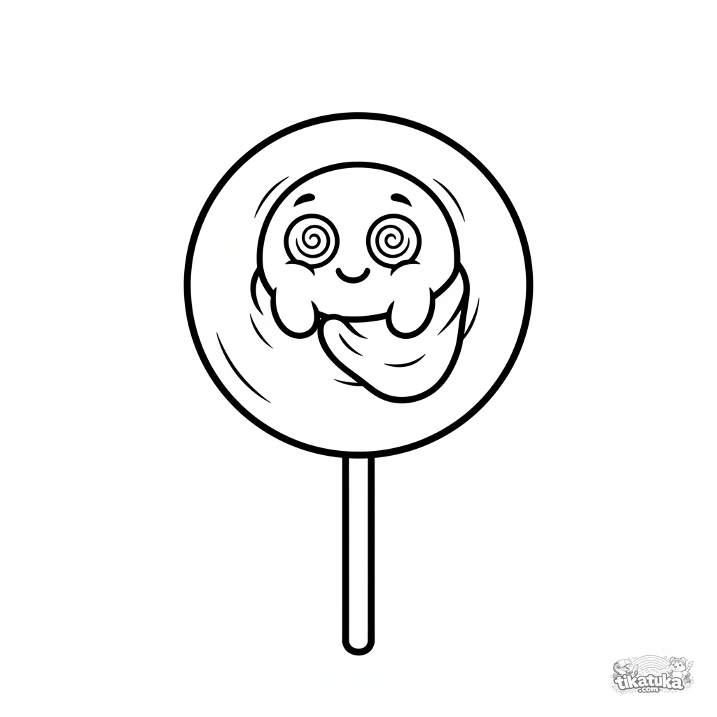 Simple coloring page for toddlers 2-3: a round friendly microbe sleeps soundly on a lollipop. Large shapes, few details, wide margins for coloring.