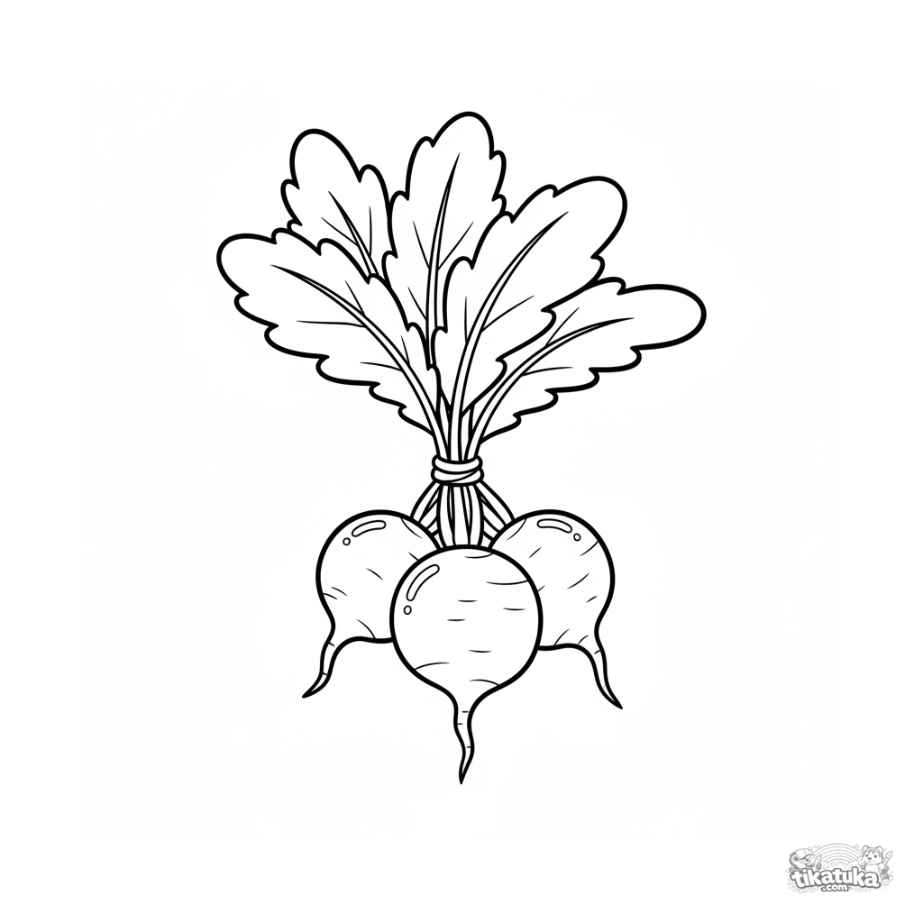 Very simple coloring page of a radish bunch for the youngest artists. Large, clear shapes. For motor skill development for ages 2-3.