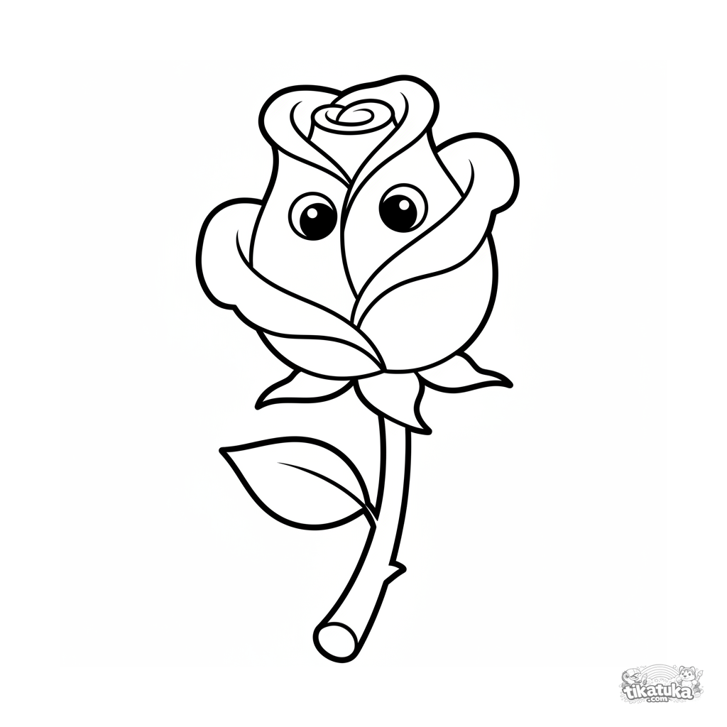 Very simple coloring page for toddlers 2-3: a large rose bud with a leaf on a stem. Huge margins, thick outlines, perfect for first crayons.