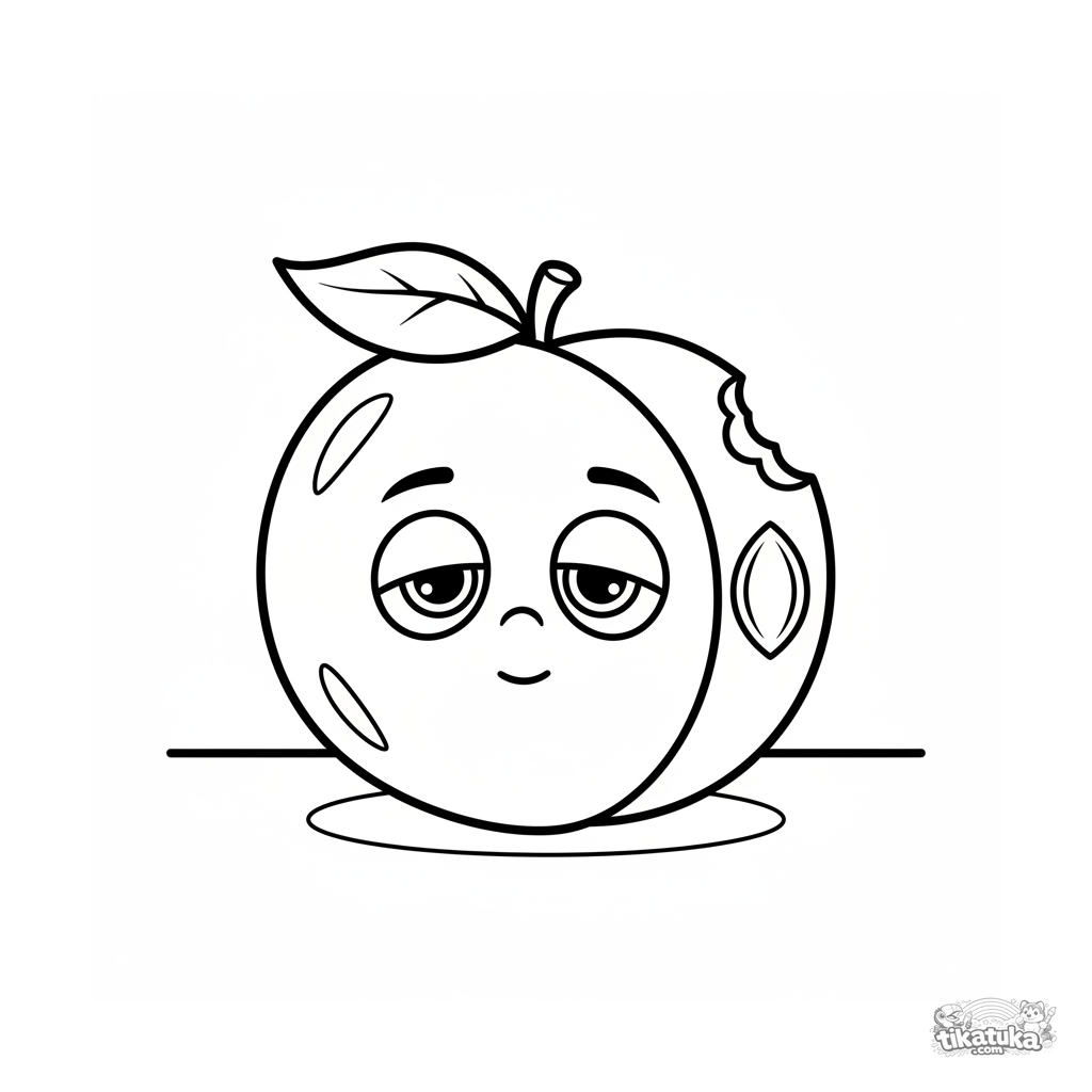 Very simple coloring page for toddlers 2-3: one large peach with a leaf. Soft rounded shapes, hint of texture, clear silhouette.