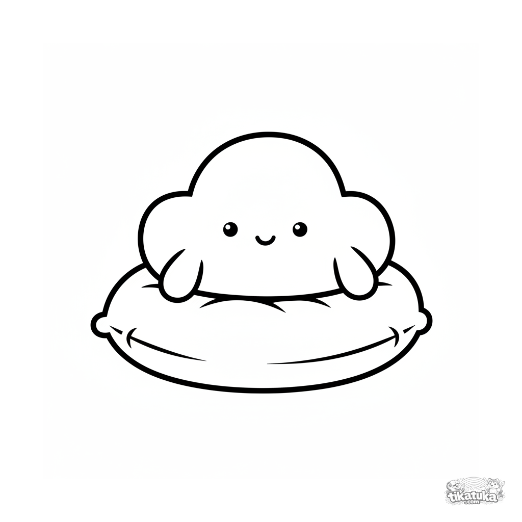 Toddler coloring page: a smiling cloud rests on a pillow. Very simple outlines, large coloring areas, suitable for children 2-3 years old.