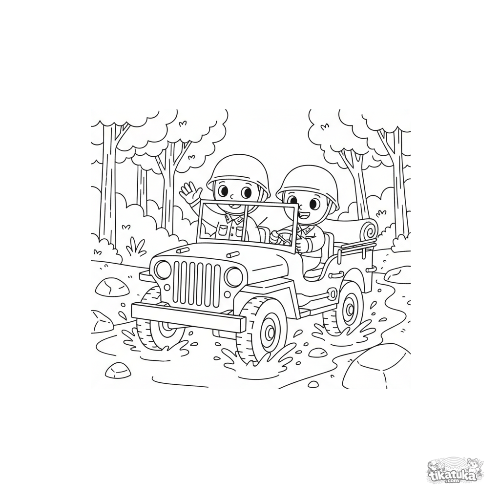 A Military Vehicles coloring page with Medium detail. It suits ages 4-6 years, prints well at home, and opens right away in online mode.