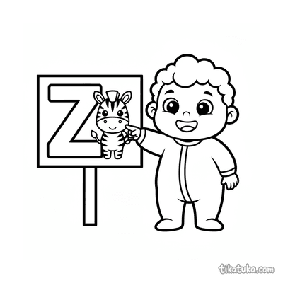 Toddler Pointing at Big Letter Z for Zebra Sign