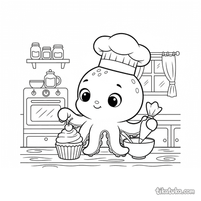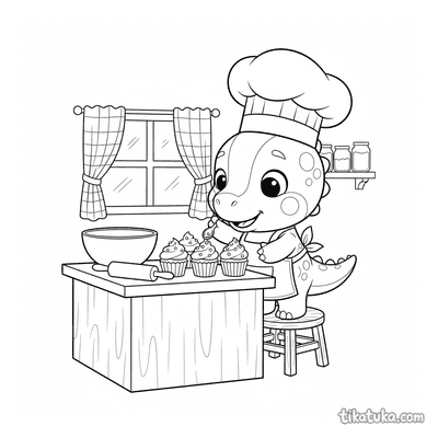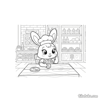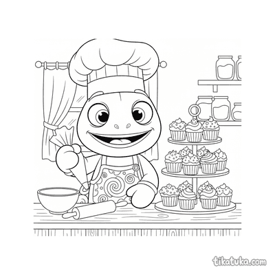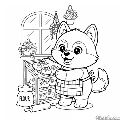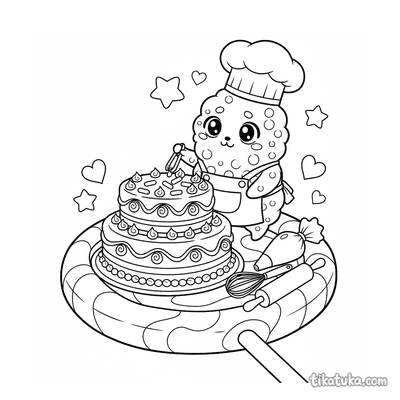 These baker coloring pages feature friendly characters in the kitchen. Children can color scenes of baking bread, decorating treats, and working with ovens.