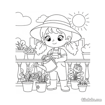 The collection includes a little gardener watering potted plants, a grandma knitting, and friends playing a board game on the veranda floor. You'll also find a sleepy hamster in a teacup on the rail and a hedgehog resting on the steps. Our balcony scenes are ready to print with clean outlines perfect for crayons and markers. You can download all 17 pages at once for a themed coloring activity or try coloring the hammock or the overconfident cat in sunglasses directly on your screen.