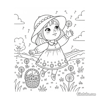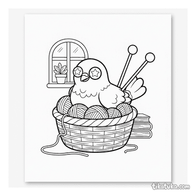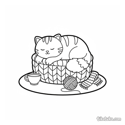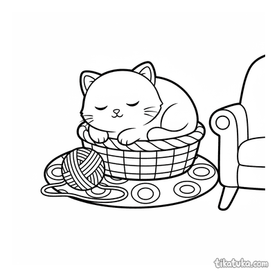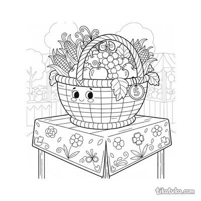 These coloring pages feature baskets in a variety of charming scenes. Children can find baskets filled with yarn, part of a picnic, or holding playful kittens.