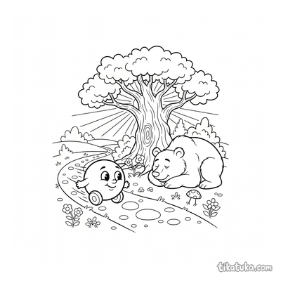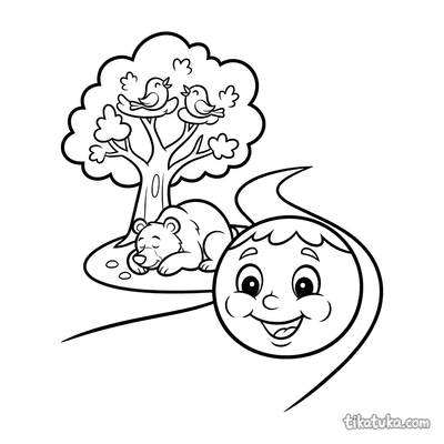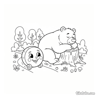 You'll find illustrations of bears sleeping under large mushrooms, resting on forest paths, and interacting with characters from the classic Kolobok tale. These scenes offer a fun way for kids to explore different bear poses and storybook adventures. Our bear coloring pages are designed with clean, bold outlines that are easy for young artists to color. You can download and print the entire collection for a rainy day activity or use the online coloring tool for instant fun.