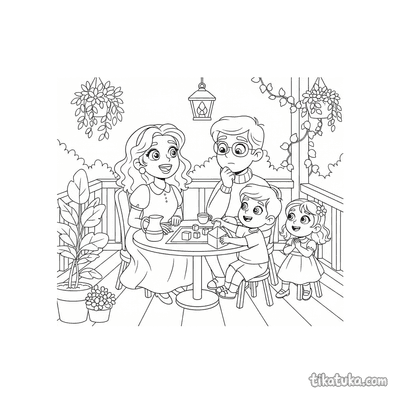 Family Playing Board Game on the Veranda Table