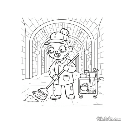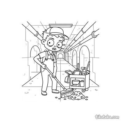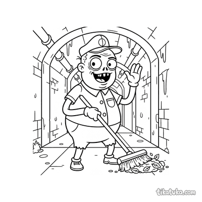 Zombie Janitor Pushing Broom in Sewer Hall