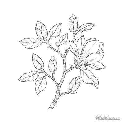 You'll find detailed illustrations of a single tulip bud, a magnolia branch at the bud stage, and a simple rose bud perfect for young children. Scenes like a tiny fairy watering a giant glowing bud and a tulip bud opening in morning dew add a touch of storybook charm to the botanical focus. All 11 pages are available as clean black-and-white outlines, ready for you to download and print at home. They are ideal for a quiet coloring session or for learning about plant growth, with options to color directly on your screen or with traditional crayons and markers.