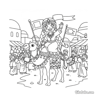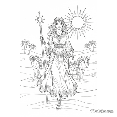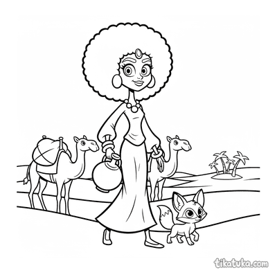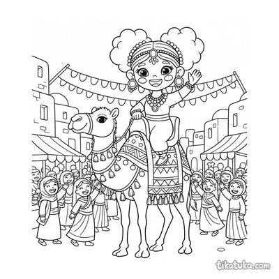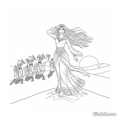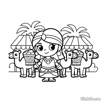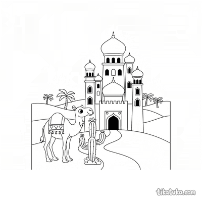 Our collection includes camels as travelers and explorers in desert landscapes, often accompanied by princesses and grand palaces. You'll find scenes of camel caravans journeying to oases, festive parades, and peaceful moments at dusk. All 12 pages are available as clean black-and-white outlines, perfect for easy printing in bulk for a classroom or home activity. Kids can enjoy coloring these detailed desert adventures directly on the screen or after downloading the PDF files.