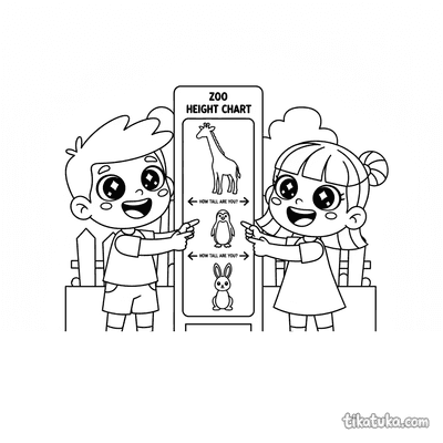 Kids Comparing Animal Sizes with Measuring Chart