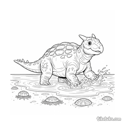 Ankylosaurus Splashing in Shallow Water