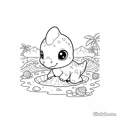 Parasaurolophus Hatchling on Ancient Beach