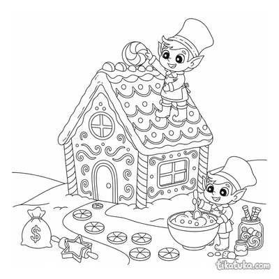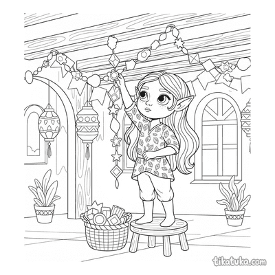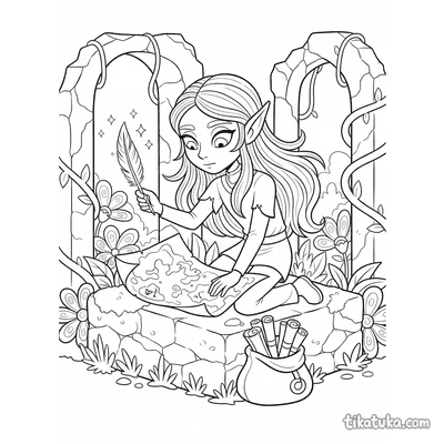 Our elf coloring pages feature scenes like a tiny elf balancing on a giant mushroom, an elven cartographer mapping floating islands, and a young apprentice mixing glowing potions in a cluttered tower. You'll find elves peeking from hollow logs and working on festive projects like a gingerbread house. These black-and-white outlines are perfect for bringing your own colors to magical forests, festive workshops, and enchanted adventures. You can easily download or print any page you like, and the clean lines work well with crayons, markers, or our online coloring tools.