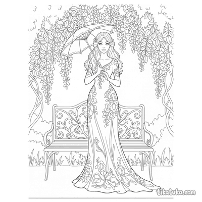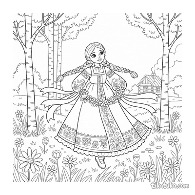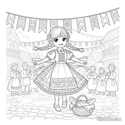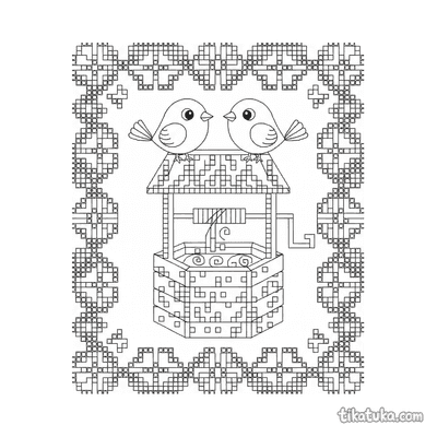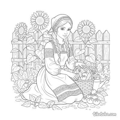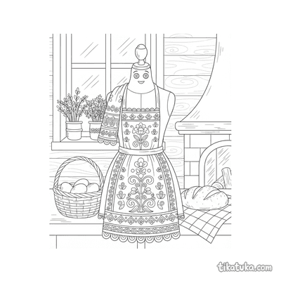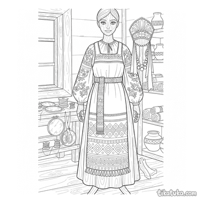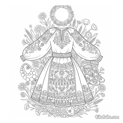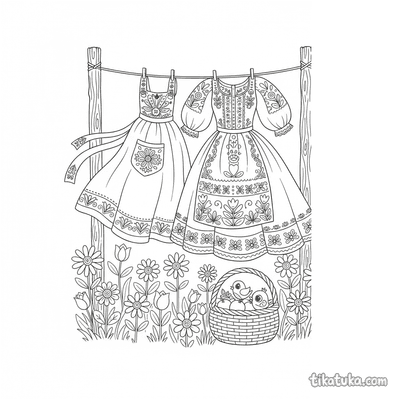 This collection includes scenes of folk embroidery on aprons and blouses, elegant Art Nouveau gowns adorned with ivy and organic motifs, and flat lays of traditional garments. You'll also find patterns like the well with birds and a girl embroidering by the well. All 21 embroidery pages are ready to print on standard home paper, making it easy to create a themed coloring activity. The clean, bold outlines are perfect for practicing fine motor skills while bringing these detailed textile arts to life with color.