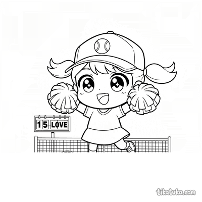 Chibi Tennis Fan Cheering with Pom-Poms