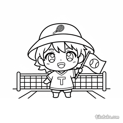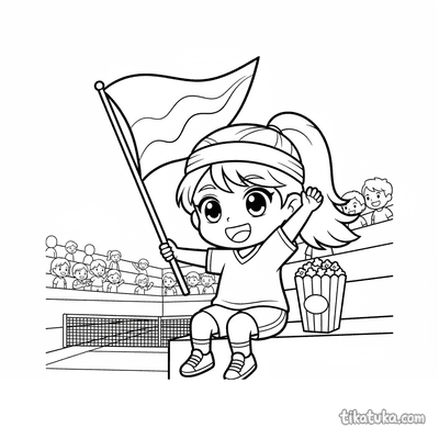 Chibi Tennis Fan Waving Flag on Court