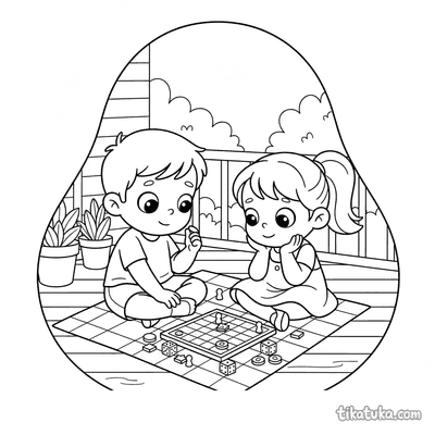 Siblings Playing Board Game on Veranda Floor