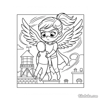The pages capture the thrill of flight with scenes like a fairy riding a dragonfly, a brave heroine on Pegasus, or Baba Yaga flying in her mortar. You'll also find a microbe superhero with a cape, an alien on a comet, and the majestic Firebird soaring over a palace. These black-and-white outlines are perfect for printing at home or coloring directly on your screen. You can download the entire set of flying adventures or pick individual pages to bring these dynamic sky-high scenes to life with color.