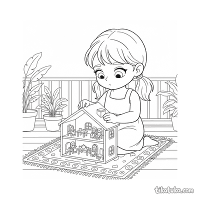 Girl Playing with a Dollhouse