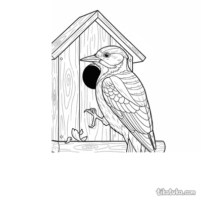 Woodpecker Inspecting Birdhouse Wall