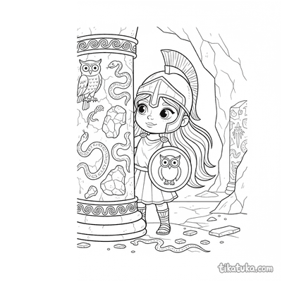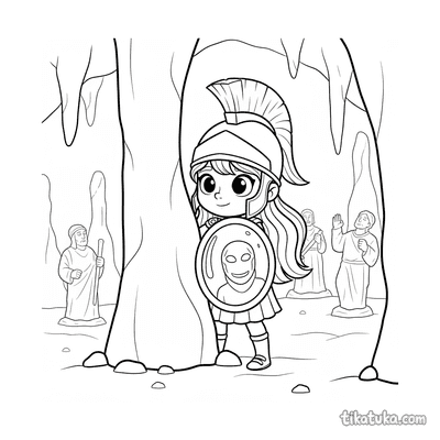 This collection includes Gorgon sisters like Stheno at the loom, a snake charmer with a flute, and a sleeping Gorgon. Kids will also discover a young warrior in the Gorgon's lair, a stone sculptor at work, and a satyr by the Gorgon's treasure. The black-and-white outlines are designed for easy coloring, whether you want to print a single page like the toddler-friendly Gorgon face or download the whole set. You can color these mythical scenes online or print them in bulk for a group activity.