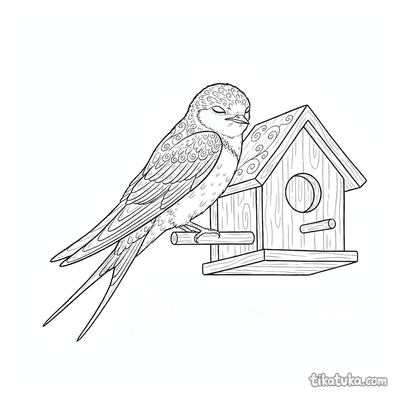 Swallow Resting on Birdhouse Ledge