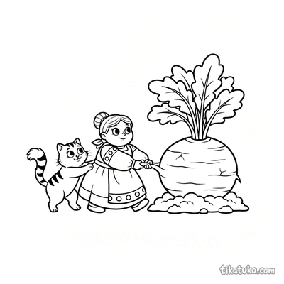 The Gigantic Turnip: Granddaughter and Cat Pulling