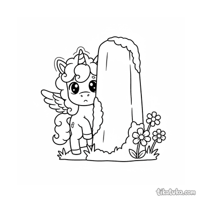 Winged Unicorn Foal Hiding Behind a Monolith